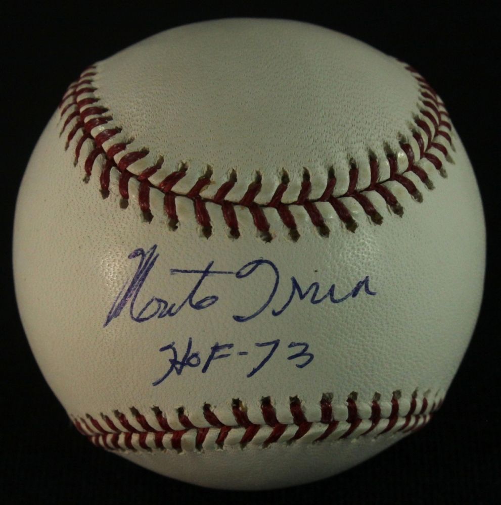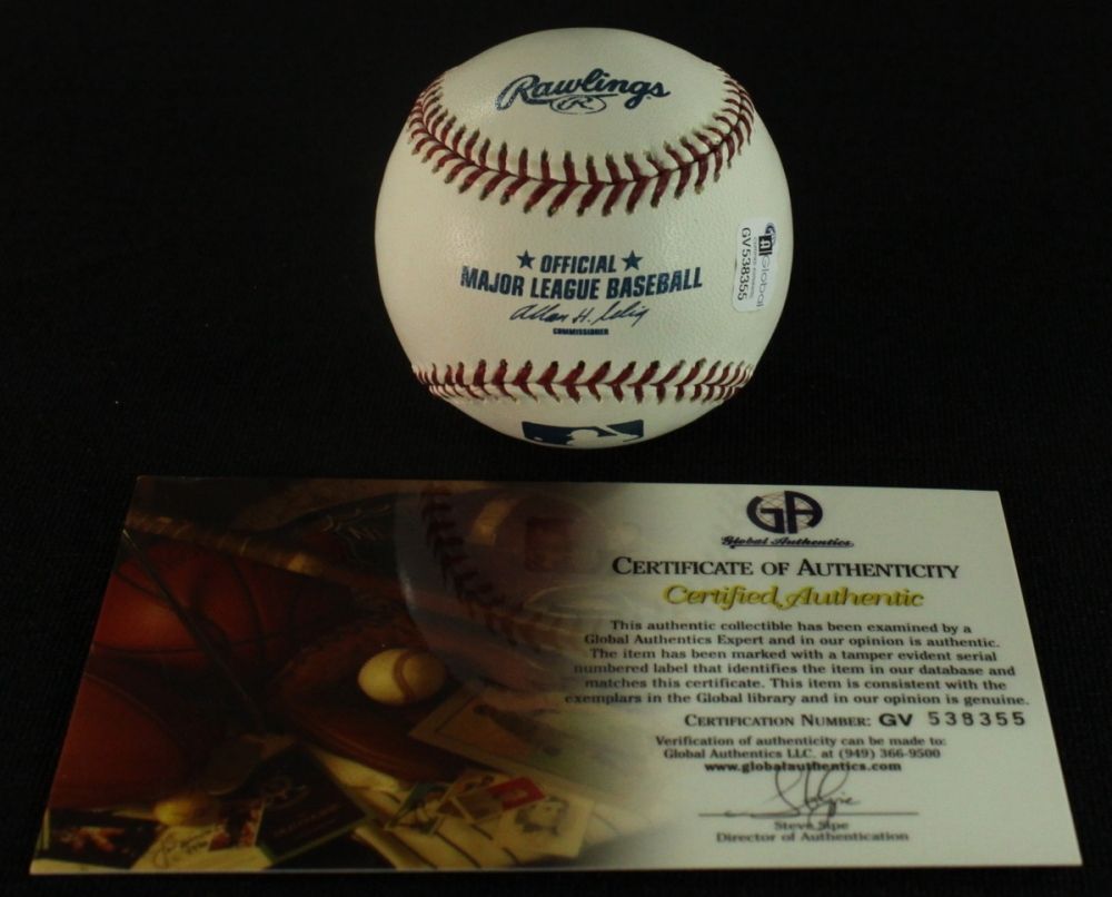 Official Major League Baseball hand-signed in blue ink by Monte Irvin (Giants HOF). The autograph includes a Global Authentics (GA) hologram and matching COA for authenticity purposes.