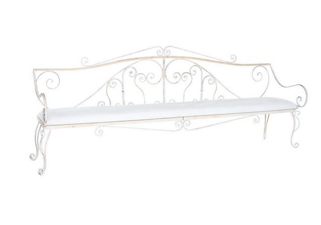 Montecito Bench Back-Back - Simple and classic with white iron and glass, the Montecito Collection has a Victorian flair that complements the rustic style of Central Coast wine country, or an elegant European Estate. 2'4". All Items in this Collection were created for the wedding of Kim K and Kris Humphries. Made of cast iron and hand made and finished with an antique finish. Designed to have a glass top, this mixture of old world elegance and modern lines is a very versatile look. Rental price associated with this item: $395.00.