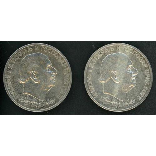 Montenegro. Nicholas I, Lot of two 5 Perpera Coins