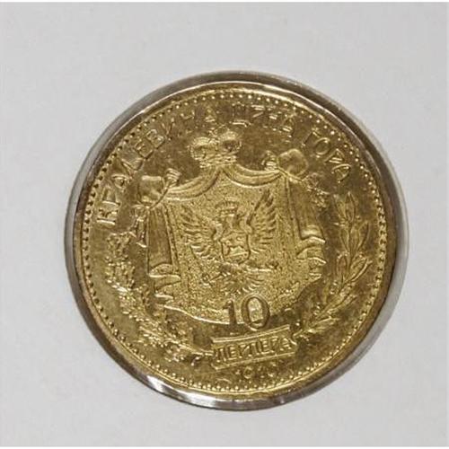 <B>Nicholas I gold 10 Perpera 1910,</B></I> KM9, bust left, AU, two heavy scrapes on the bust.<BR><BR><b>Shipping:</b> Coins & Currency (<a target="_blank" href="http://www.heritageauctions.com/common/shipping.php">view shipping information</a>)