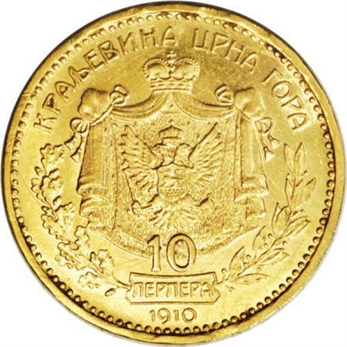 Montenegro Nicholas I gold 10 Perpera 1910, KM9,