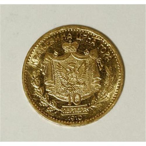 <B>Nicholas I gold 10 Perpera 1910,</B></I> KM9, bust left, nice lustrous AU.<BR><BR><b>Shipping:</b> Coins & Currency (<a target="_blank" href="http://www.heritageauctions.com/common/shipping.php">view shipping information</a>)