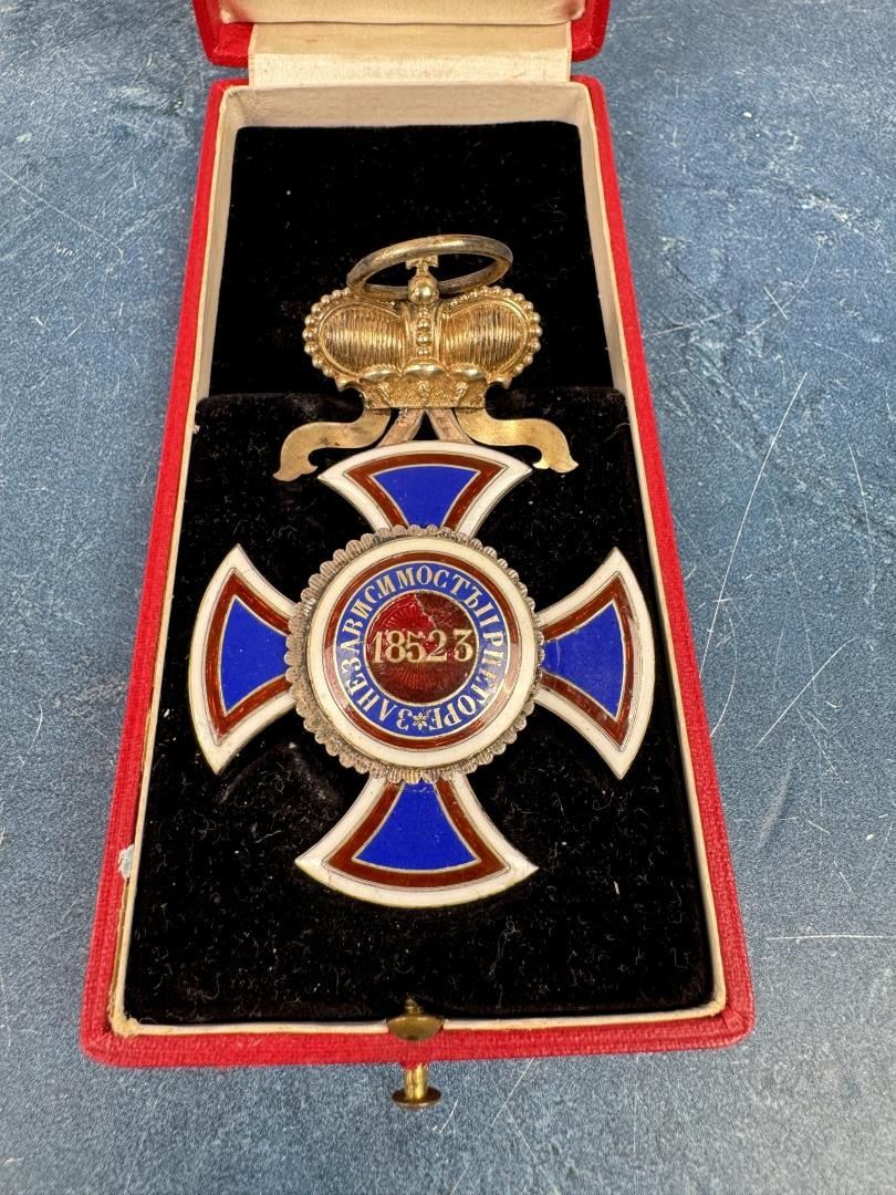 Nice cased example. Some enamel cracking, wax is deteriorated and medal is in need of repair as shown.