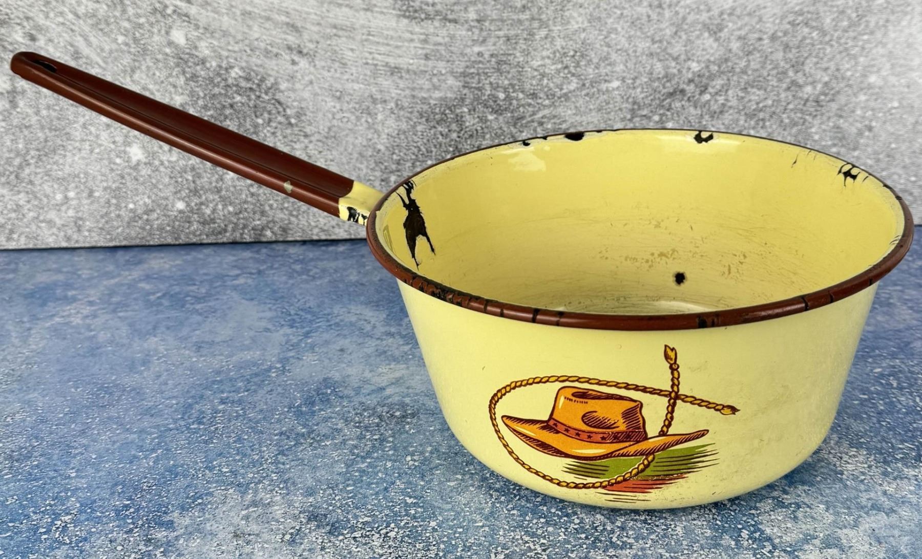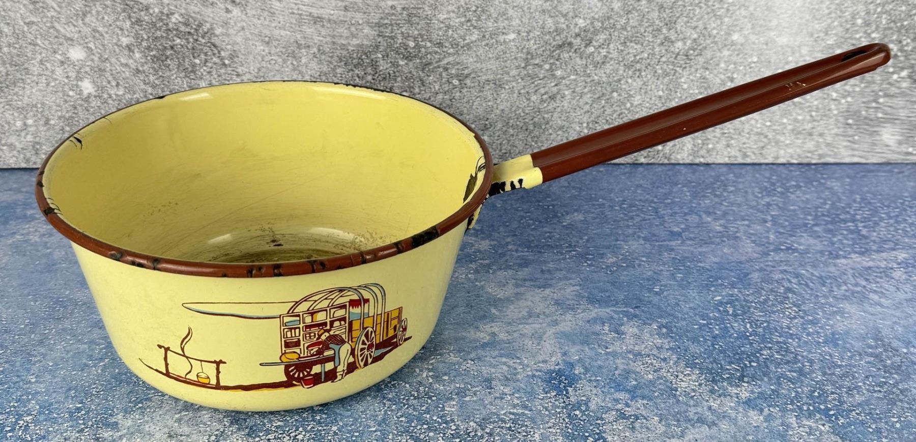 9 1/4" diameter. 16 3/4" long. Some wear as shown but very scarce.