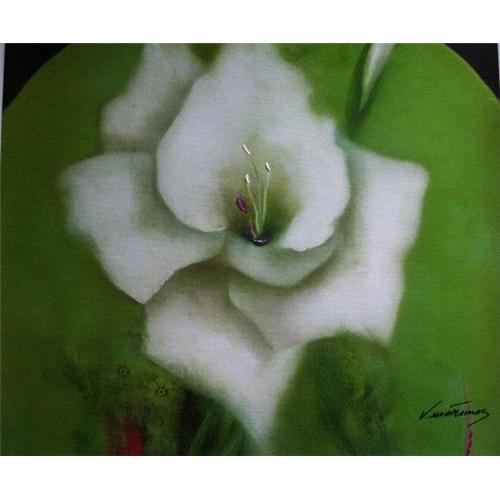 REDUCTION: INNER WORLD OF MEXICAN ARTIST: VICTORIA MONTESINOS<p>Amazing imagery, texture and vibrant colors through the imagination and talents of, Mexican born artist, Victoria Montesinos. She is the daughter of a renowned Mexican movie director Fernando A. Rivero. Trained in Mexico and France and worked with surrealist painter, Leonora Carrington. Her style continues to evolve through various mediums, textiles, paintings and serigraphs. Victoria paints primarily flowers and her viewers are forced to step into the world of flowers and peel away the infinite layers,passages and colors akin yet more surreal than O'Keefe's fascination with the world of nature and flowers.<p>Victoria's work has been exhibited since 1972 and has been shown in galleries in the United States, New York City- California, as well as internationally.<p>Hallmarked, original hand signature and hand embellished. limited edition Giclee #90-275. Sold Out Edition. Original Medium: multi-media print on canvas, hand over-painted with artist's oil paint.<p>Measurement; 24" x 24" UNFRAMED.