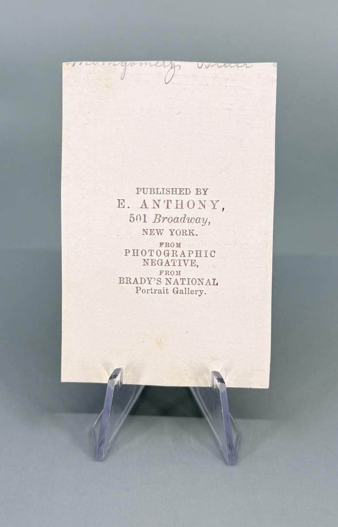 Published by E. Anthony from Brady's National Portrait Gallery. Montgomery Blair (May 1813 – July 1883) was an American politician and lawyer from Maryland. He served in the Lincoln administration cabinet as Postmaster-General from 1861 to 1864, during the Civil War.