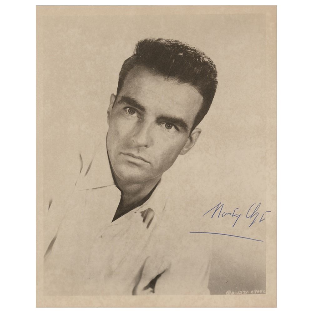 Vintage matte-finish 8 x 10 head-and-shoulders photo of the handsome actor, signed in blue ballpoint, "Monty Clift." In very good to fine condition, with overall light mottling. Uninscribed examples are uncommon.