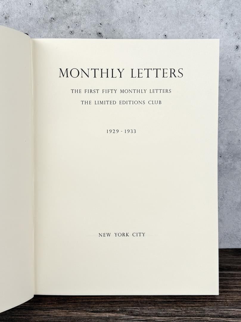 The First Fifty Monthly Letters The Limited Editions Club 1929-1933. Limited Edition