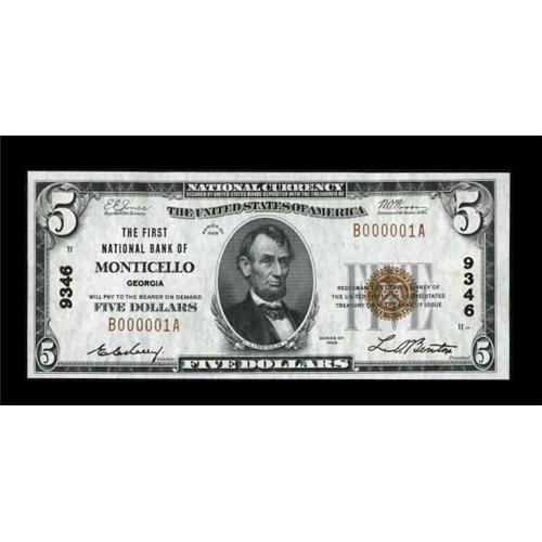 Monticello, GA - $5 1929 Ty. 1 The First NB Ch.