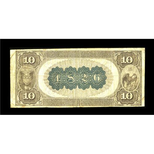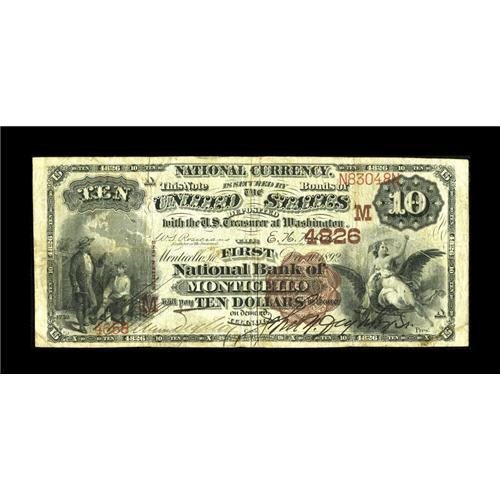 <B>Monticello, IL</B></I> - $10 1882 Brown Back Fr. 485 <B>The First NB</B></I> Ch. # (M)4826<BR>A moderate amount of circulation is noted on this piece. For the grade it is especially attractive and colorful. The signatures of the cashier and president remain bold. <B>Fine-Very Fine.</B></I><BR><I>From The Lincoln Collection</B></I><BR><BR><b>Shipping:</b> Coins & Currency (<a target="_blank" href="http://www.heritageauctions.com/common/shipping.php">view shipping information</a>)