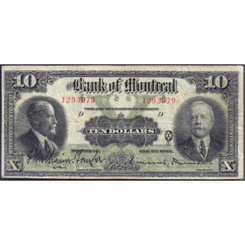 Bank of Montreal Ten Dollars 1923, CH 505-56-04 Serial Number 1293079 D, PMG Very Fine 20. Some minor soiling on the back