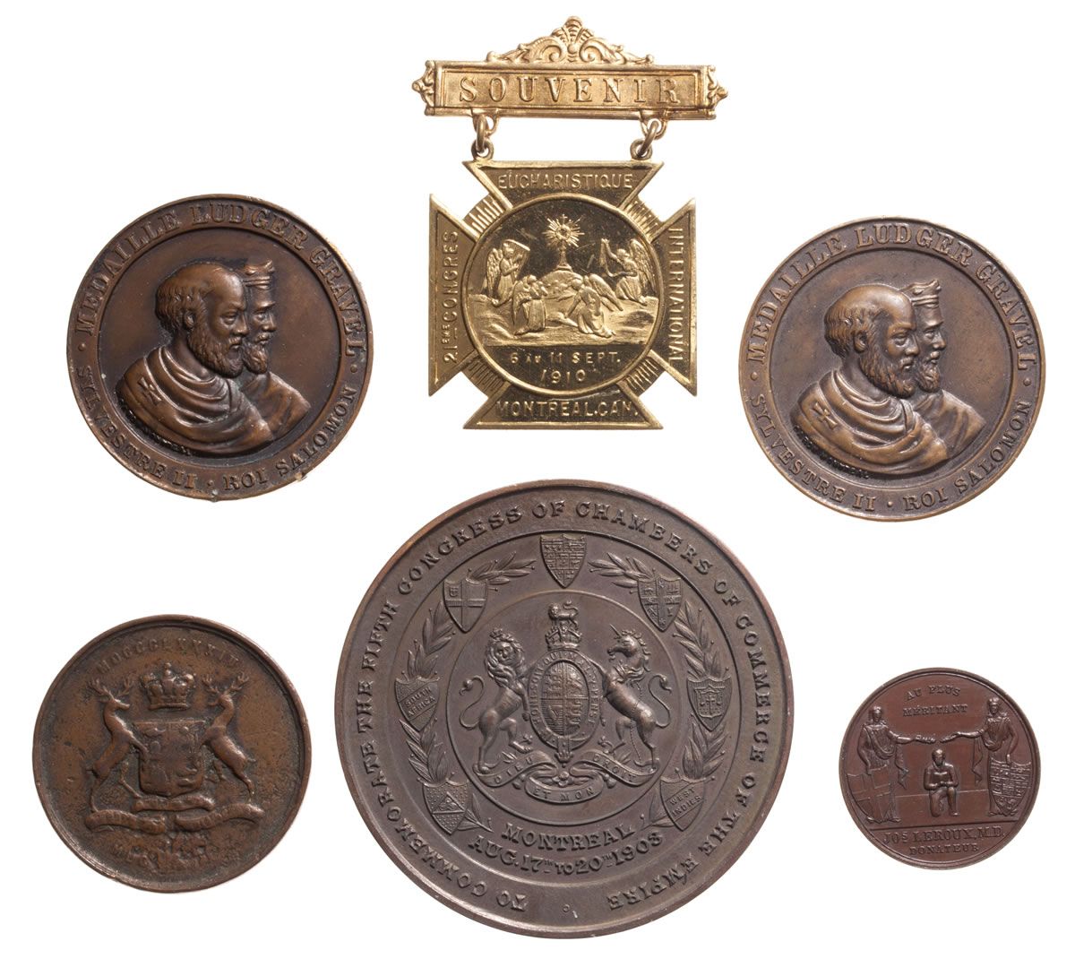 Obv: "To Commemorate the Fifth Congress of Chambers of Commerce of the Empire, Montreal, August 17th to 20th, 1903", British Coat of arms at centre; Rev: View of Montreal Harbour at top centre, building at lower centre, "Board of Trade Building, Inaugurat
