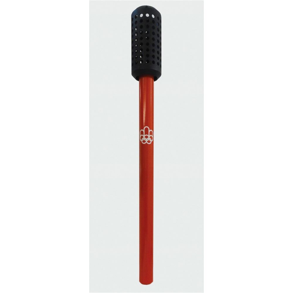 Official 1976 Montreal Olympics torch, comprised of aluminum, measuring 26″ in length and 3″ at its widest point, designed by Georges Huel and Michel Daillaire. The simple yet distinct torch consists of a red handle emblazoned with the Montreal Olympics emblem, and a black 'basket' to carry the flame; the black color on top was intended to make the flame stand out. The torch exhibits minimal traces of wear. About 1,200 torchbearers participated in the relay, which lasted just four days from July 13 to July 17 and covered 775 km.