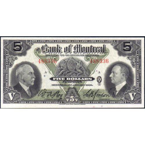Bank of Montreal Five Dollars 1935, CH-505-60-02, Serial Number 488336 A, CCGS Unc-63
