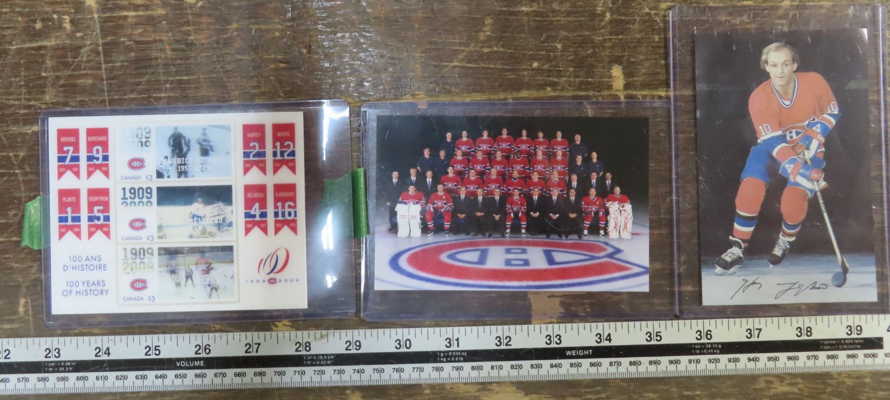 Montreal Canadiens Lot Guy Lafleur, Team Pic and Commemorative Stamp Sheet