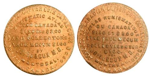 Breton#582. English reverse, French obverse. Buy the Canadian Copper Coin Catalogue $.50. Numismatic Atlas for Canada $1.50 and $2.00 and collectors Vade Mercum $1.00 by Jo's Leroux M.D. Montreal, Canada.