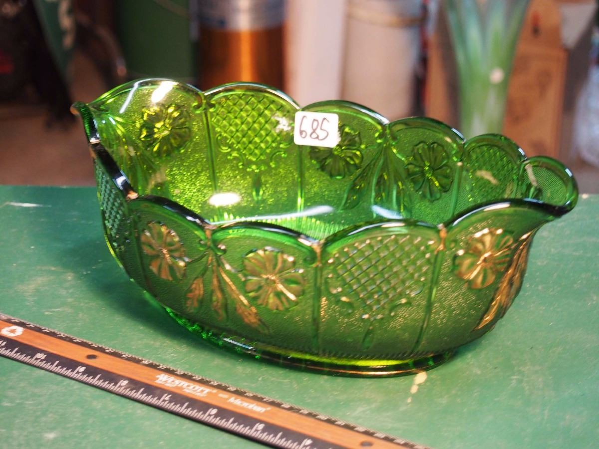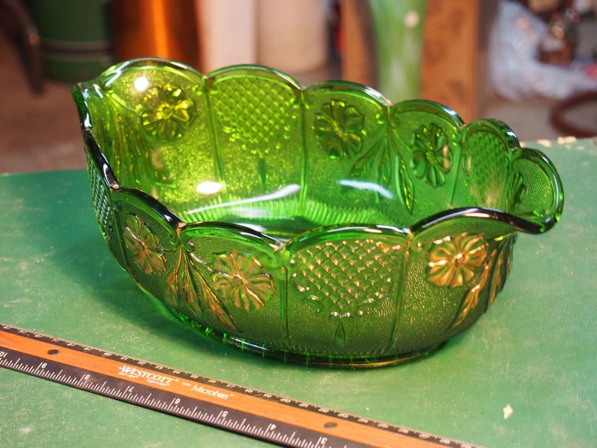 Montreal Green Diamond Glass Bowl, 11 1/2"X7"