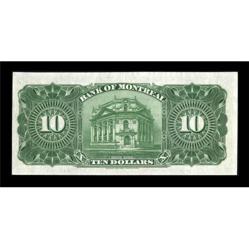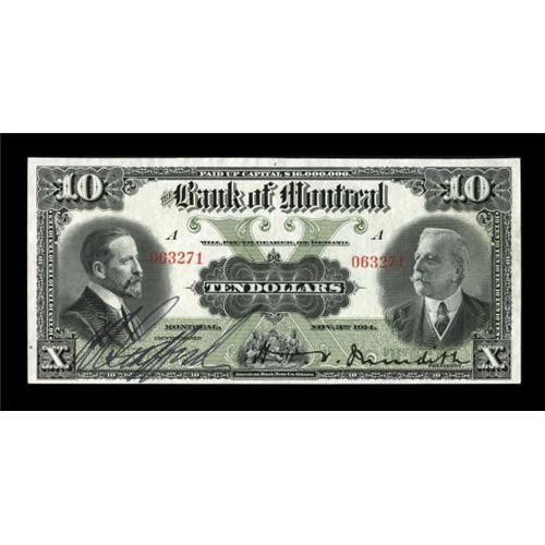 <B>Montreal, PQ- The Bank of Montreal</B></I> $10 Nov. 3, 1914 Ch. # 505-54-06<BR> While notes of this issue circulated for quite some time, high grade specimens remain scarce. Bright <B>Extremely Fine+.</B></I><BR><I>From The Thomas M. Flynn Collection</B></I><BR><BR><b>Shipping:</b> Coins & Currency (<a target="_blank" href="http://www.heritageauctions.com/common/shipping.php">view shipping information</a>)