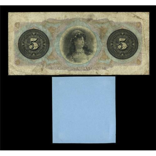 <B>Montreal, PQ- The Merchants Bank of Canada</B></I> $5 Jan. 1, 1900 Ch. 460-14-02<BR> A very scarce note with a great sailing ship center vignette. This piece and its accompanying vignette of the reclining woman at the left were obtained by John Ameen from the November, 1974 Donlon sale of the Thomas F. Morris, Jr. estate as lot 829. <B>Very Good-Fine.</B></I> <BR><I>From The John Ameen Collection</B></I><BR><BR><b>Shipping:</b> Coins & Currency (<a target="_blank" href="http://www.heritageauctions.com/common/shipping.php">view shipping information</a>)