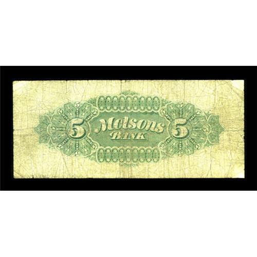 <B>Montreal, PQ- The Molsons Bank</B></I> $5 Oct. 2, 1905 Ch. 490-28-04<BR> A very scarce note in any grade. Well circulated but intact <B>Very Good,</B></I> with good color and appearance for the grade. <BR><BR><b>Shipping:</b> Coins & Currency (<a target="_blank" href="http://www.heritageauctions.com/common/shipping.php">view shipping information</a>)