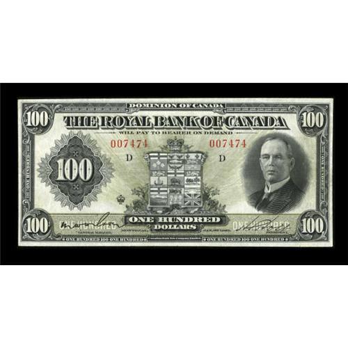 <B>Montreal, PQ- The Royal Bank of Canada</B></I> $100 Jan. 3, 1927 Ch. # 630-14-20<BR> A pleasing <B>Very Fine</B></I> example of this hard to obtain denomination. <BR><I>From The Thomas M. Flynn Collection</B></I><BR><BR><b>Shipping:</b> Coins & Currency (<a target="_blank" href="http://www.heritageauctions.com/common/shipping.php">view shipping information</a>)