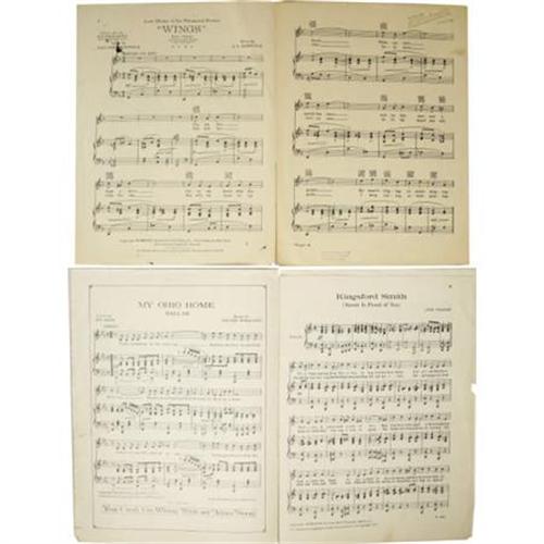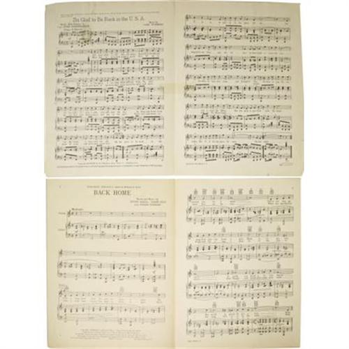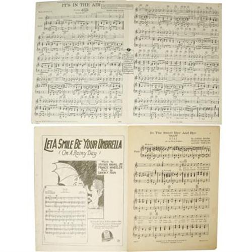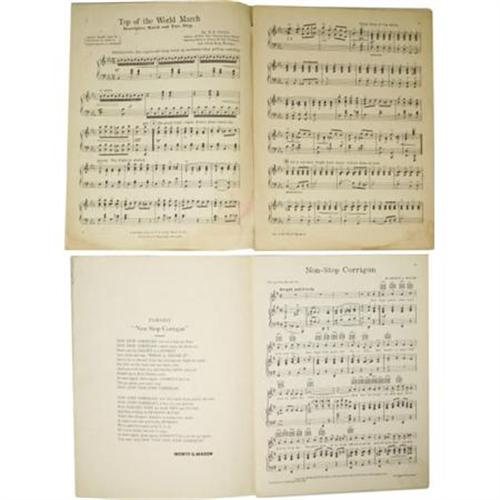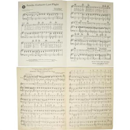 <B>Monumental Collection of Early Aviation Sheet Music.</B></I> Over 100 distinct aviation-related song sheets with a veritable feast of colorful illustrated covers. The songs themselves are fascinating and eclectic, with titles like "The Flight of the Aeronauts", "Take Me Up With You Dearie", "Let's Hop Off for Heaven", "Don't Go Any Higher Jeremiah", "Come Josephine In My Flying Machine", "That Aero Rag Song", "That Aviator Boy of Mine", "Since Katy the Waitress Became an Aviatress", "Hustle, Rustle, Tussle, Muscle", "Drop Me Down In Dixie", "In An Airship Built For Two", "The Demons of the Air", "Me And Jane In A Plane", "In Cupid's Biplane", "Let's Do Some Loving Up In Cloudland", and many, many more. Several of the songs in this collection celebrate famous aviators of the time. "Farewell To Both Of You" memorializes Will Rogers & Wiley Post; "I'm Glad To Be Back In The U.S.A." sets Eddie Rickenbacker's words to music; two songs each celebrate Kingsford Smith and Ruth Elder; three songs each honor Admiral Richard Byrd, "Wrong Way" Corrigan, and Amelia Earhart; and no less than five songs are dedicated to pioneering British pilot, Miss Amy Johnson. The Ruth Elder song "Flaming Ruth" is signed by her "<I>Ruth Elder</B></I>". In addition, several songs celebrate military fighter pilots, and a handful of song sheets are written in various foreign languages. Overall, the sheet music presented here is in fine condition. This mammoth collection also includes two French aviation magazines measuring approximately 11.25" x 14". The French magazines are titled <I>La Vie Au Grand Air</B></I> (1910) and <I>La Revue Sportive Illustree</B></I> (1909). Both are packed with articles, photographs, and illustrations from the early days of French aviation. <I>La Revue Sportive Illustree</B></I> also contains articles on cycling, equestrian shows, and motor car racing. Both magazines are in fine condition. A vast assortment of sheet music from the early days of aviation.<BR><BR><b>Shipping:</b> Miscellaneous Collectibles, Larg (<a target="_blank" href="http://www.heritageauctions.com/common/shipping.php">view shipping information</a>)