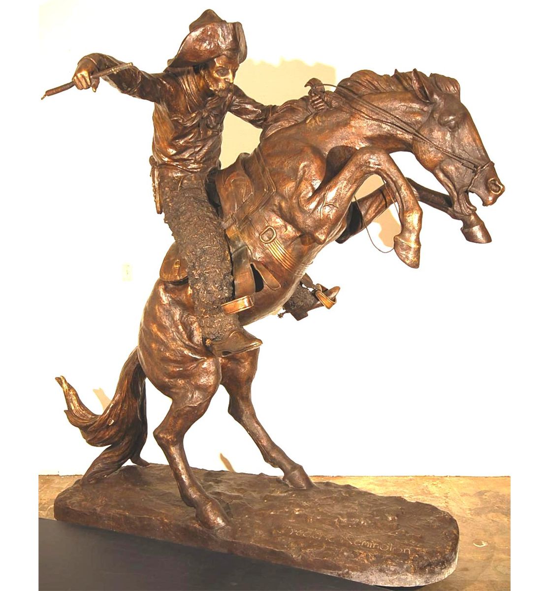 After Frederick Remington Bronco Buster monumental bronze statue is 8 feet tall!!! 8'H x 7'W x 40"D.