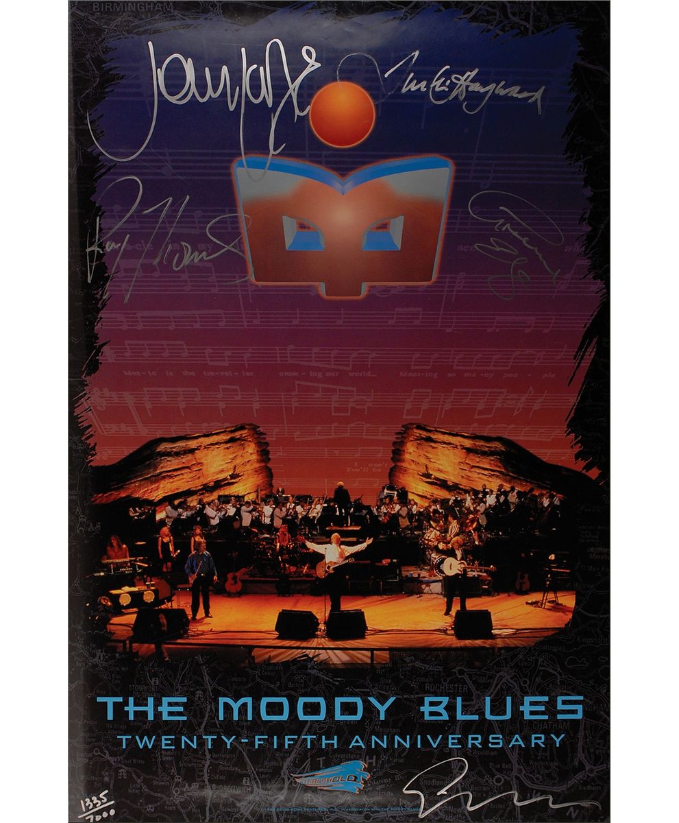 Color limited edition 24 x 36 print celebrating the band’s 25th anniversary, numbered #1335/7000, signed in silver ink by Justin Hayward, John Lodge, Ray Thomas, and Graeme Edge. Rolled and in fine condition.