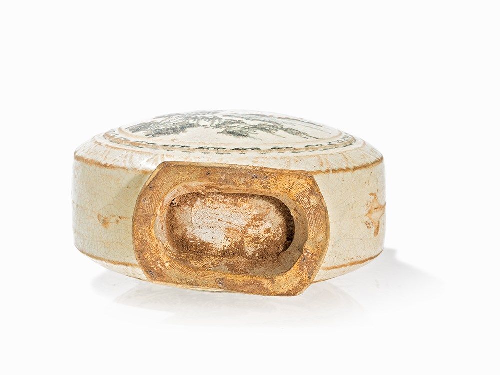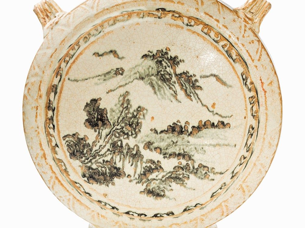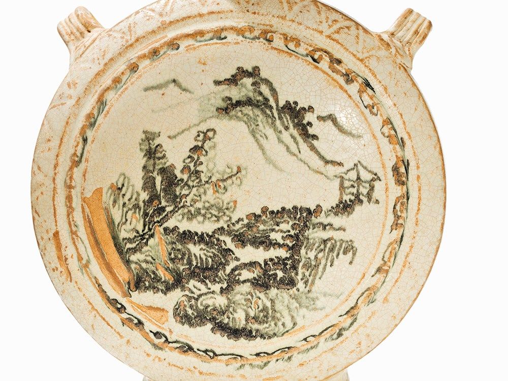 Exceptional moon flask with a decoration inspired by the delicate landscape paintings of the Song Dynasty