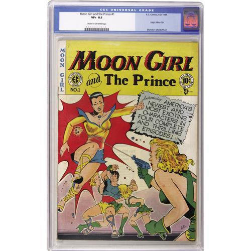 Before Johnny Craig became one of EC's premier horror-genre artists, he provided the cover for this title's first issue. In one of his few EC contributions, Sheldon Moldoff provided story art. The issue featured the origin of Moon Girl. This is the nicest copy of the issue we've offered to date; in fact, CGC hasn't certified a higher grade at this writing. Overstreet 2006 VF 8.0 value = $600; VF/NM 9.0 value = $950. CGC census 12/06: 2 in 8.5, none higher.<BR><BR><b>Shipping:</b> Slabbed Comic (<a target="_blank" href="http://www.heritageauctions.com/common/shipping.php">view shipping information</a>)