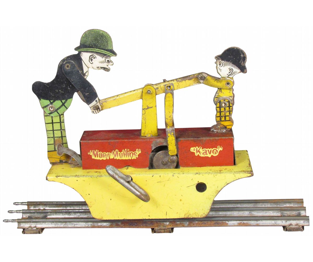 Moon Mullins and Kayo Tin Railroad Friction Toy. Some paint loss and rust otherwise good condition. Track measures 9 1/4 inches.