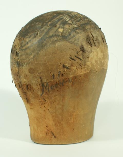 From the Max Factor Collection / Moon - N Wood Wig Head Block / Crack in the wood block {9 1/2" H x 7 1/2" W}