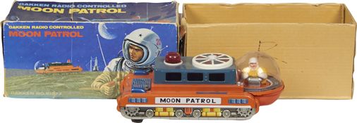 "Moon Patrol - Space Rover" Toy, Made in Japan c1960's Gakken radio controlled No. 81277, Litho. tin, Battery op., Missing remote control & antenna, Great condition w/ O.B. (box has been taped together) - 11.5" long