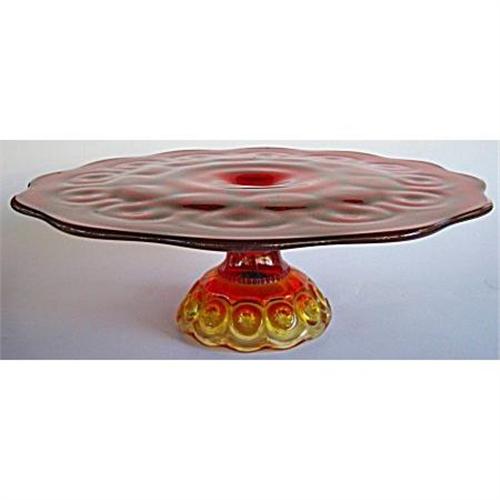 Perfect glass cake plate in the pattern Moon and Stars for the special cake. This red amberina cake plate or stand was either made by L.E.Smith or L.G.Wright Company I believe. <BR>Size is 11.0 across top and 3.50 tall. Deep ruby red fading to yellow amberina at the base makes this a treasure. <BR>Stars within moons makes the Moon and Stars pattern highly collectible.