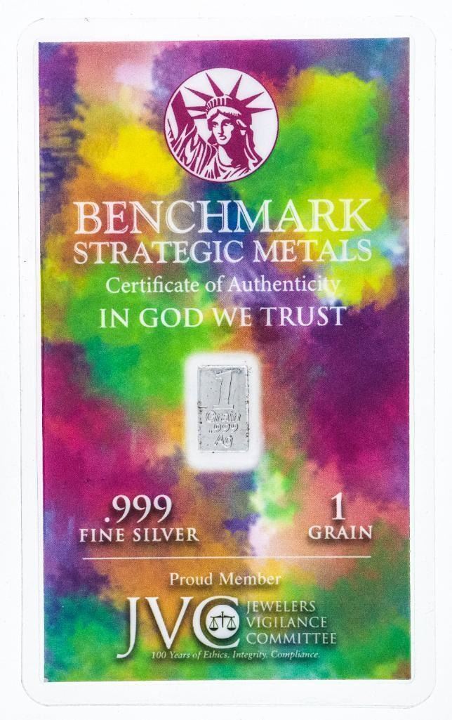 Moonbeams & Chariots .999 Fine Pure Silver Ingot 1 Grain w/Giclee Art Card Display