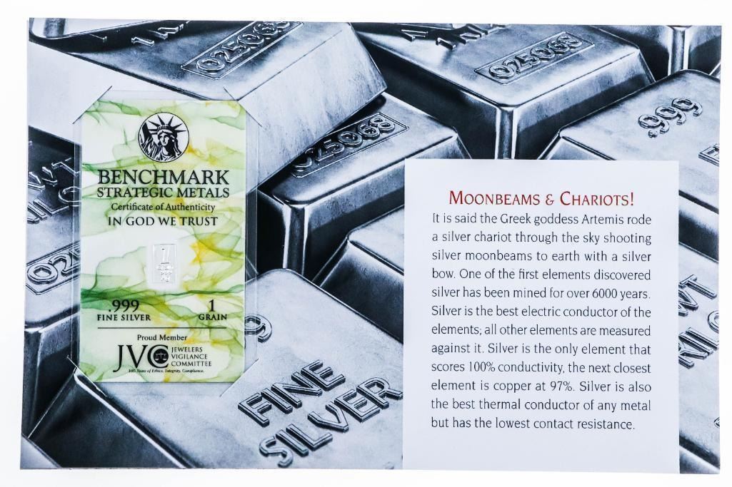 Moonbeams & Chariots -.999 Fine Silver Ingot on Giclee Art card display.