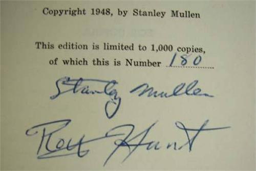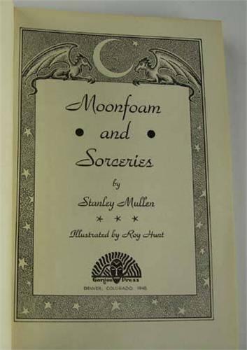 Moonfoam and Sorceries, by Stanley Mullen, illustrated by Roy Hunt, #180/1000, signed by the author and by the illustrator, published by Gorgon Press, Denver, Colorado, 1948, from the Estate of Charles Ragland Bunnell, Condition: Good