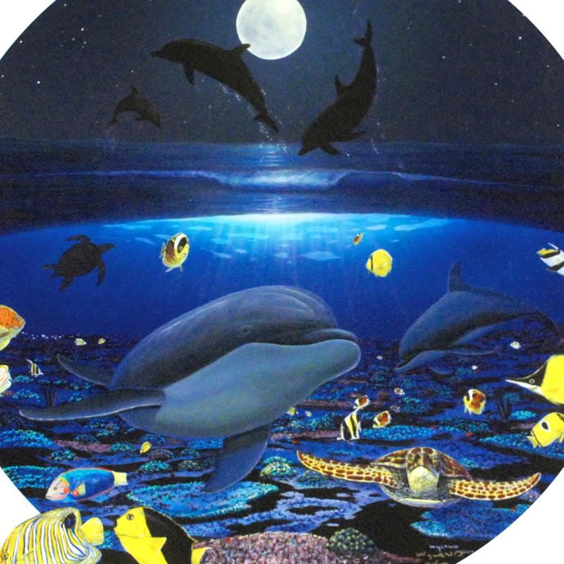 Wyland's true love for nature is so clearly conveyed in each of his brilliantly detailed works. "Moonlight Celebration" is a limited edition giclee on canvas, numbered and hand signed by Wyland! Includes Certificate of Authenticity! Measures approx. 20" x 20" (image).