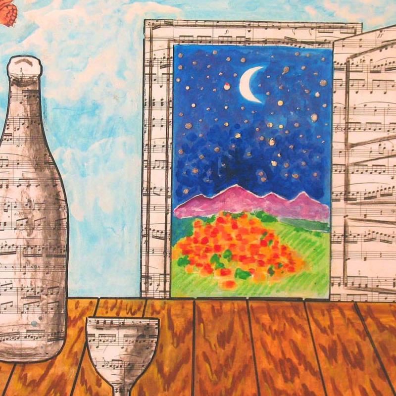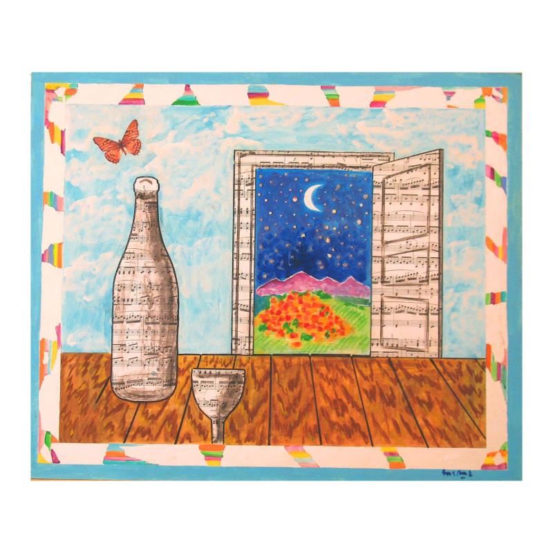 "Moonscape" is an original Mixed Media on Board by Wayne Ensrud. The piece is hand signed by the artist and comes with a Certificate of Authenticity. Measures approximately 20" x 24".