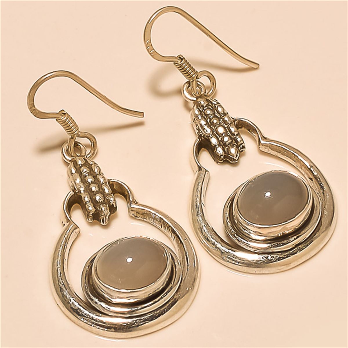 Moonstone Earring Solid Sterling Silver Length:1.6 inch Weight:11 gram #E-071