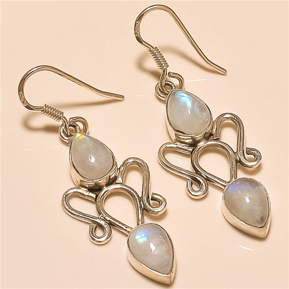 Moonstone Earring Solid Sterling Silver Length:2 inch Weight:6 gram #E-081