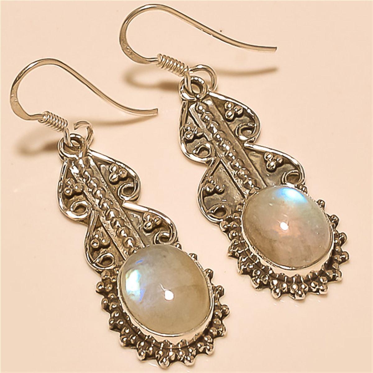 Moonstone Earring Solid Sterling Silver Length:1.6 inch Weight:7 gram #E-034