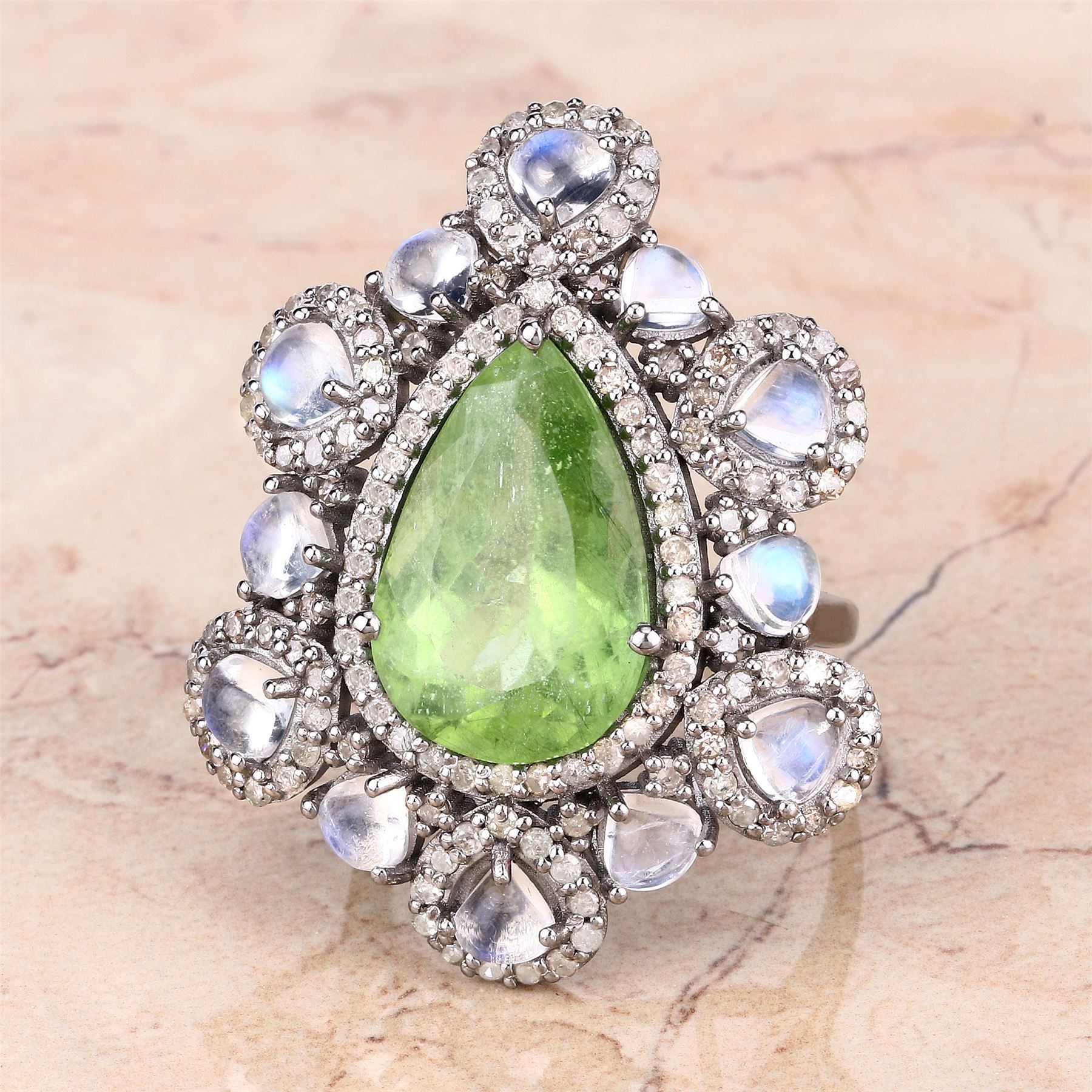 DESCRIPTION DETAIL: Moonstone & amp; Peridot Earth-Mined Diamond Ring