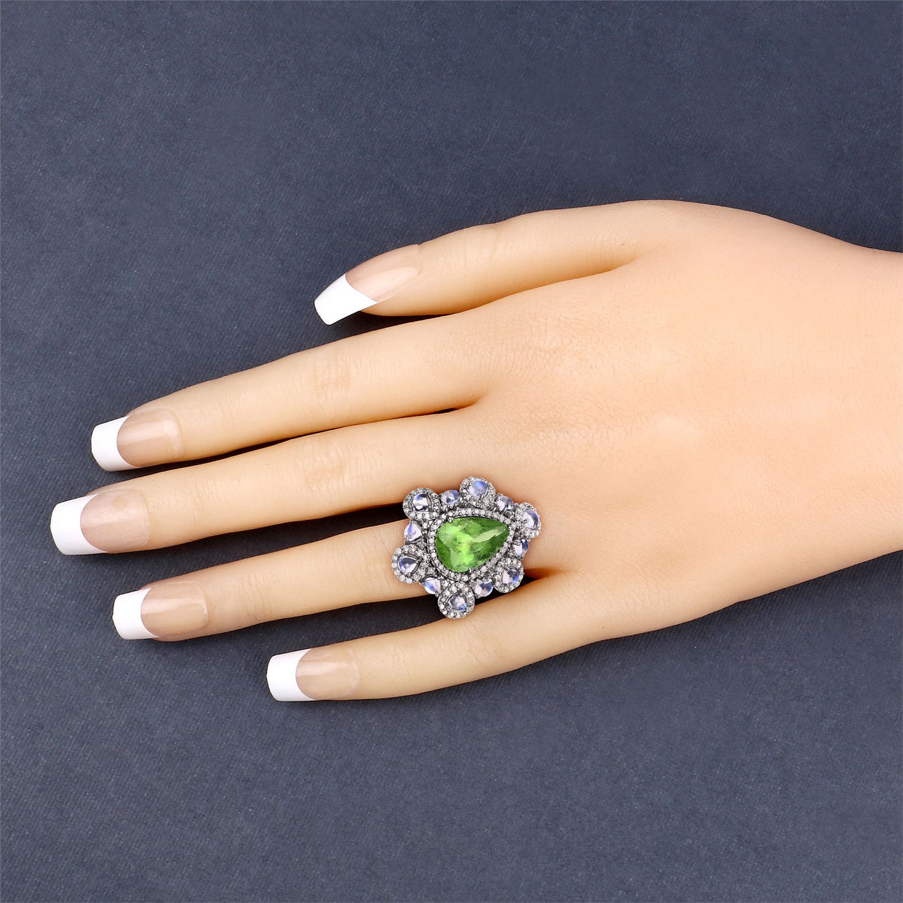 TITLE DESCRIPTION: Moonstone & amp; Peridot Diamond Halo Cocktail Ring& nbsp;