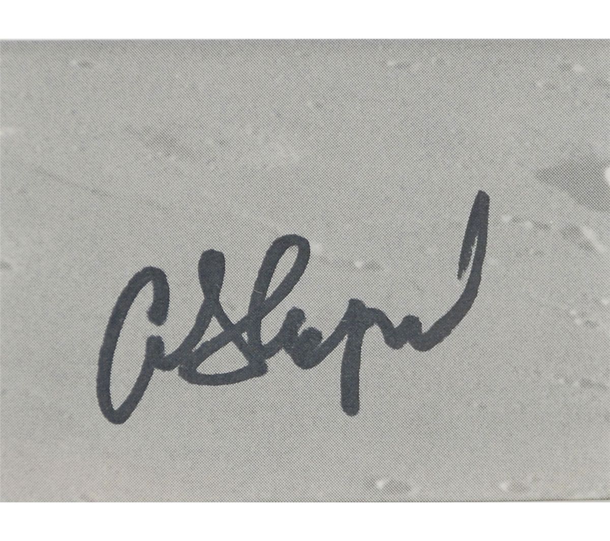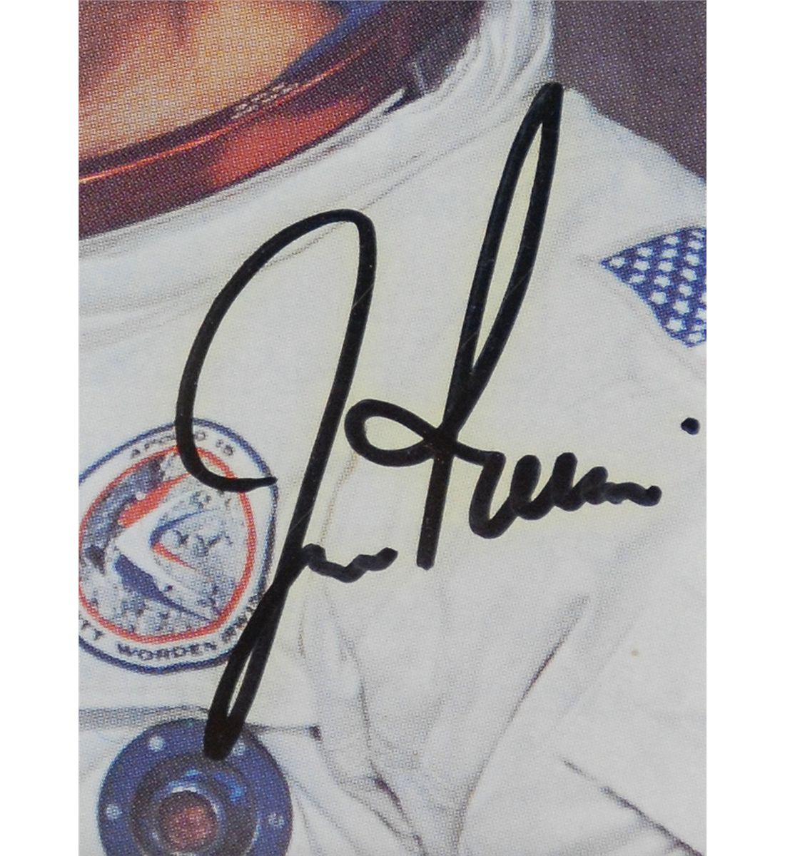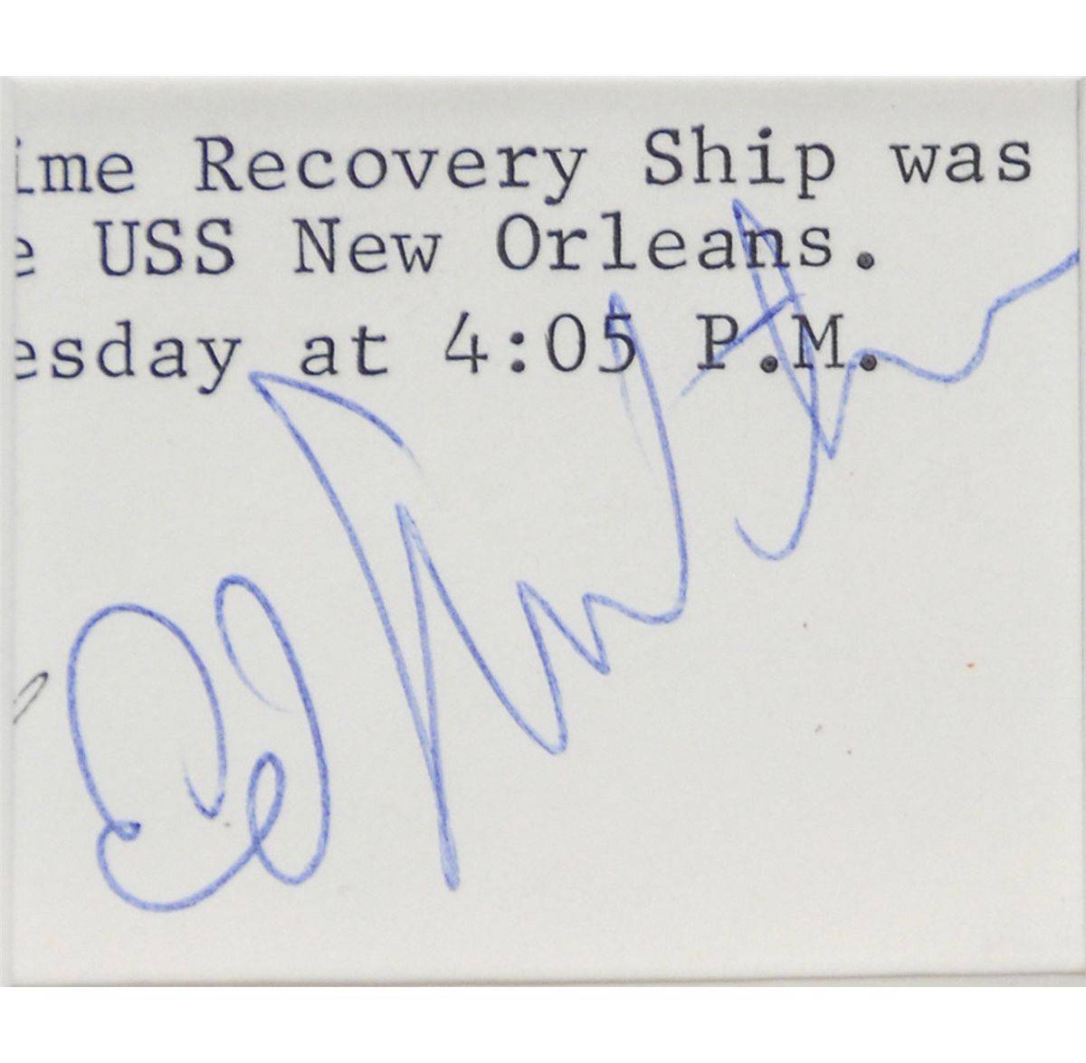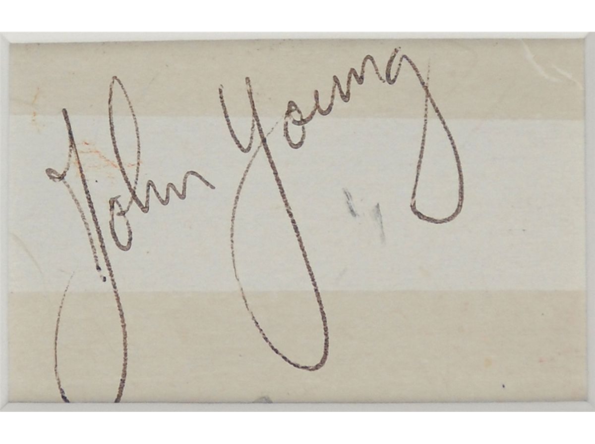 Impressively displayed collection of ink signatures of all 12 moonwalkers: Neil Armstrong, Buzz Aldrin, Charles Conrad, Alan Bean, Alan Shepard, Edgar Mitchell, Dave Scott, Jim Irwin, John Young, Charlie Duke, Gene Cernan, and Harrison Schmitt, clipped from a variety of formats including photos, books, cards, and programs. All signatures are grouped together by mission and impressively double-matted and framed with color photos of each moonwalker, their respective mission patch, and a large color poster of Buzz Aldrin on the lunar surface, to an overall size of 65 x 44. In overall fine condition, with tape over the top and bottom of Young’s signature. Oversized.