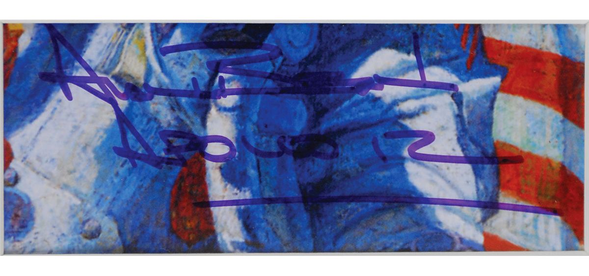 62. All Lots sold by RR Auction are accompanied by a Certificate of Authenticity. On any lot presented with a Certificate of Authenticity (“COA”) issued by RR Auction, that warranty insures only to the original Bidder (as shown in Auctioneer’s records) “Bidder”. Bidder may not transfer the rights afforded under the COA and it is null and void when Bidder transfers or attempts to transfer the lot. The COA warranty is valid from date of the auction in which Bidder was awarded the lot to five (5) years after its purchase. The COA warranty is valid as to its attribution to the person or entity described or to the lot’s usage. The Bidder as well as their heirs, successors and assigns is also given an unconditional lifetime guaranteed that allows the present owner of any lot purchased through RR Auction the right to consign with RR Auction. When the lot is accompanied by a Certificate of Authenticity (or its equivalent) from a third-party authentication provider, buyer has no right of return. On lots not accompanied by third-party authentication or under extremely limited circumstances not including authenticity (e.g. gross cataloging error), a Bidder who did not bid from the floor may request Auctioneer to evaluate voiding a sale; such request must be made in writing detailing the alleged gross error, and submission of the lot to Auctioneer must be pre-approved by Auctioneer. A Bidder must notify the appropriate department head in writing of the Bidder’s request within three (3) days of the non-floor bidder’s receipt of the lot. Any lot that is to be evaluated for return must be received at the office of RR Auction within 35 days after Auction. AFTER THAT 35 DAY PERIOD, NO LOT MAY BE RETURNED FOR ANY REASONS. Lots returned must be in the same condition as when sold and must include any Certificate of Authenticity. If a bidder wishes to challenge the Letter of Authenticity within the five (5) year warranty period, Bidder must present with the claim, authoritative written evidence that the lot is not authentic as determined by a known expert in the field. If Auctioneer concurs that the lot is not as represented, Bidder shall be refunded their purchase price. If the Auctioneer denies the claim, the Bidder may file the dispute with the American Arbitration Association with locale in Boston Massachusetts, Suffolk County, before a single selected Arbitrator selected by the American Arbitration Association. The American Arbitration Association arbitration shall be conducted under the provisions of the Federal Arbitration Act and the Bidder consents to jurisdiction in The Commonwealth of Massachusetts. The challenge to Authenticity must be brought within one (1) year if the Auctioneer denies the claim. After one (1) year, the Bidder hereby releases and discharges RR Auction from any and all legal, equitable, administrative and/or other claims, counterclaims, demands, setoffs, defenses, accounts, suits, debts, dues, actions, causes of action, proceedings, arbitrations, damages, executions, judgments, findings, controversies and disputes, whether known or unknown or suspected or unsuspected, whether in law or equity, that the Bidder have or may have had against RR Auction arising from or relating to any claim whatsoever. Specifically, the COA provided by RR Auction, does not provide for incidental or consequential damages or other indirect damages. Any lot sold with a certificate of authenticity or other warranty from an entity other than Auctioneer is subject to such issuing entity’s rules and such conditions are the sole remedy afforded to Bidder. For information as to third party authentication warranties the bidder is directed to contact RR Auction.