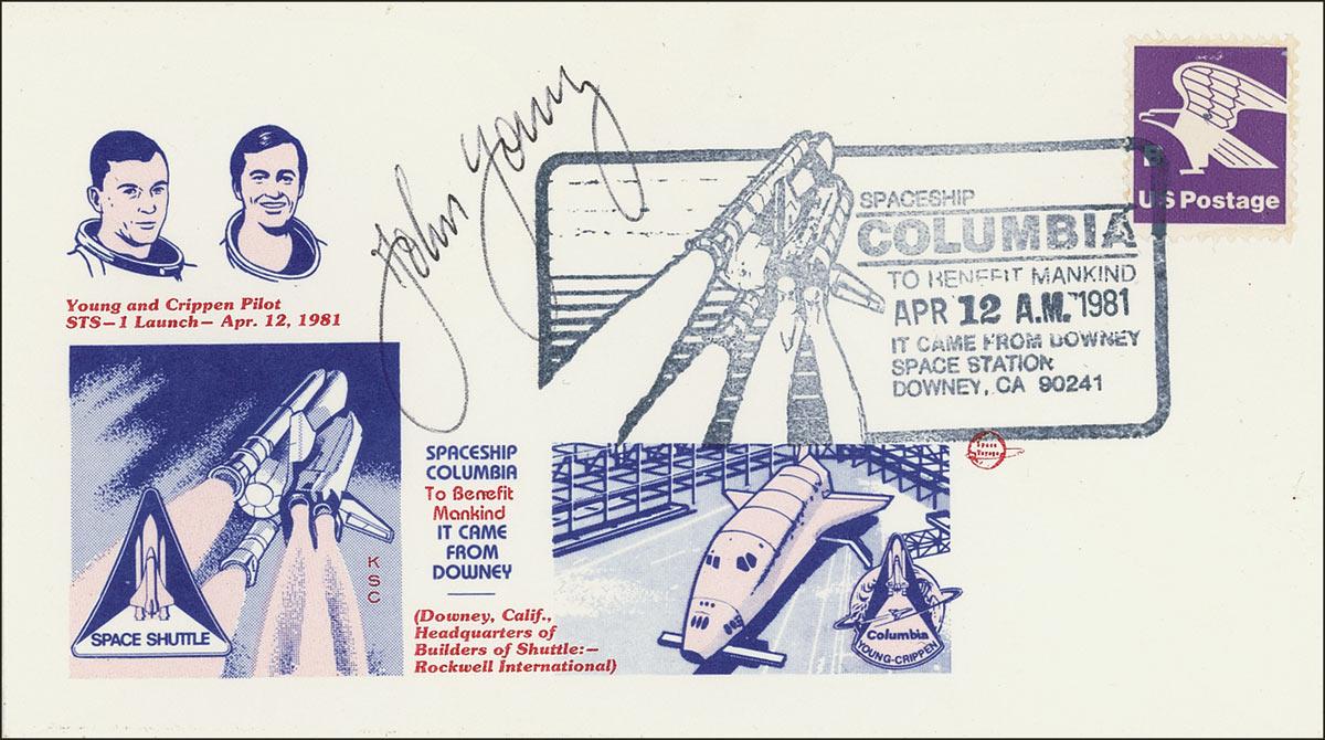 John Young - commemorative cover, bearing a cachet honoring the STS-1 mission of the space shuttle Columbia, signed in black ink