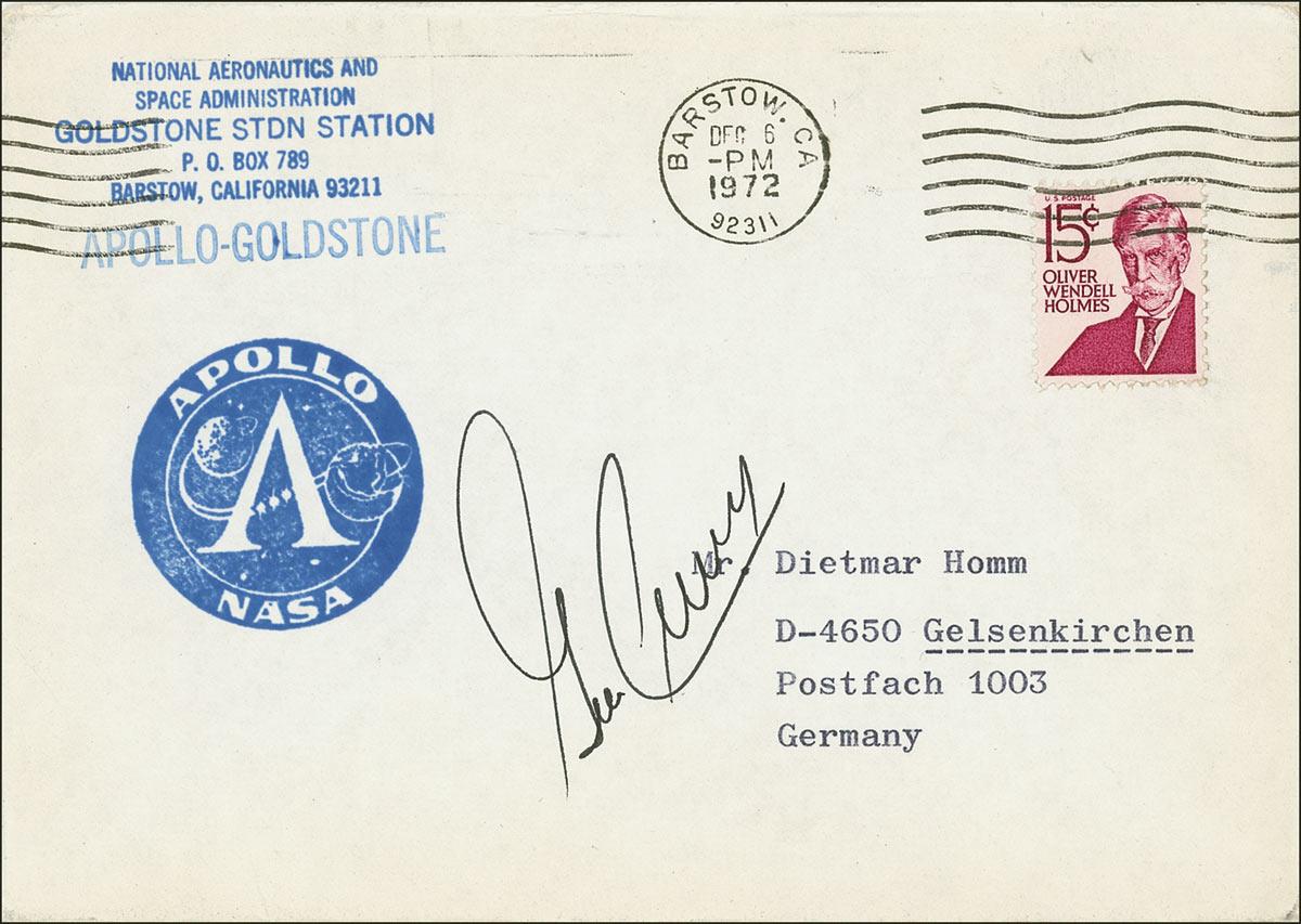 Gene Cernan - NASA mailing envelope, 6.5 x 4.5, bearing a Goldstone STDN Station return address, signed in black ink