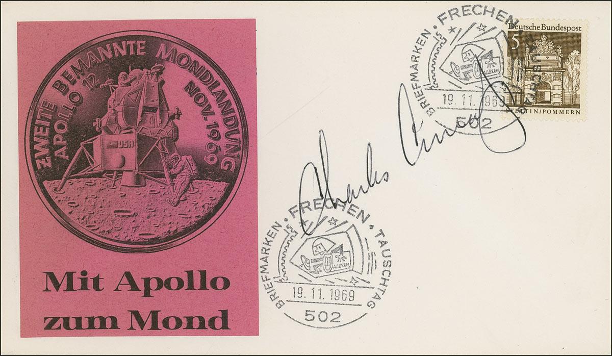 Charles Conrad - German commemorative cover, bearing a cachet honoring the mission, signed in black ink