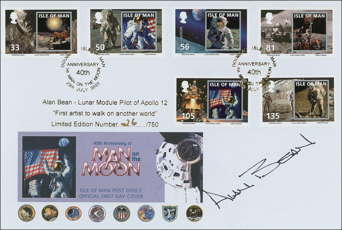 Alan Bean - limited edition commemorative cover, 7.5 x 5, #26/750, honoring the 40th anniversary of the man on the moon, signed in black ink